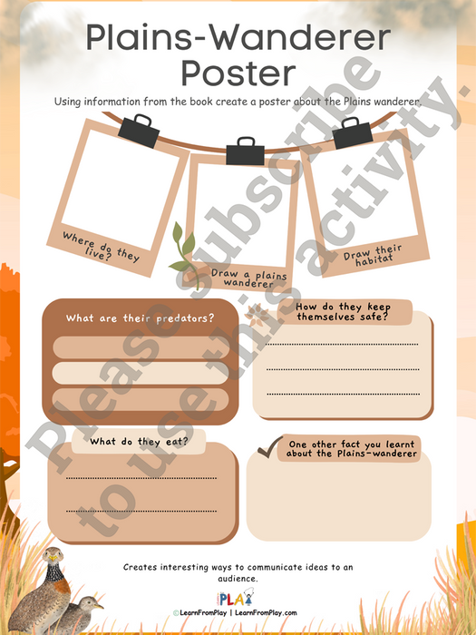 On The Trail Of The Plains-Wanderer: A Precious Australian Bird Book Activities